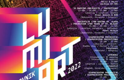 Festival svjetlosti „Lumiart“ 2023 poziva vas da istražite dubine svjetla i sjene kroz dojmljive svjetlosne instalacije koje se protežu duž dubrovačkih ulica, poljana i palača. Ovaj festival nije samo proslava svjetlosti, nego i oživotvorenje suptilne igre svjetlosti i arhitekture, prošlosti i suvremenosti, tradicije i inovacije uz neizostavnu glazbu.