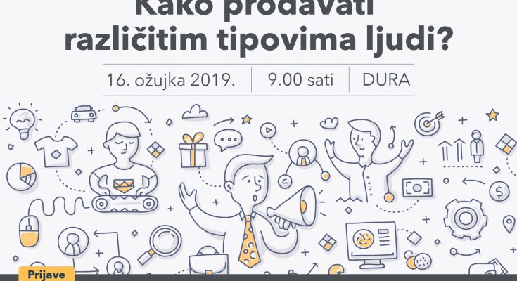 Kako izaći na kraj s različitostima a da svaki sastanak bude prodajni i da održavate uspješan odnos sa svim klijentima, potencijalnim, postojećim i bivšim? Da bi dobili odgovor na ova pitanja prijavite se na radionicu koju smo ua Vas organizirali „Kako prodavati različitim tipovima ljudi“. Radionica će se održati u subotu, 16. ožujka 2019. g. u prostorijama DURA-e (Branitelja Dubrovnika 15, 20000 Dubrovnik) s početkom u 09:00 sati.