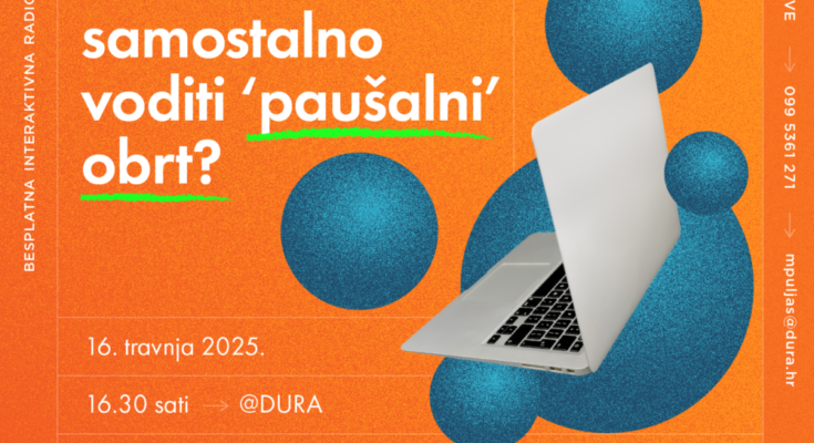 Dubrovačka razvojna agencija nastavlja sa Startup akademijom. Ovaj put organiziramo besplatnu radionicu “Kako samostalno voditi paušalni obrt”, koja će se održati u srijedu, 16. travnja 2025. u prostorijama DURA-e (Branitelja Dubrovnika 15, 20000 Dubrovnik) s početkom u 16.30 sati. Radionica će trajati 3 sata.