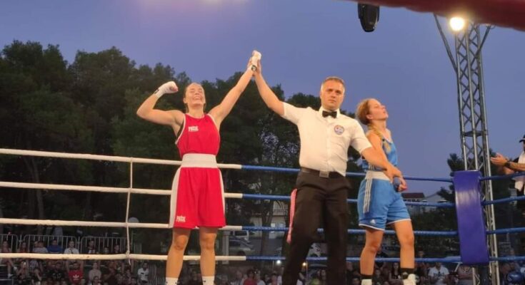“Velika pobjeda naše boksačice Dolores Mirković na sjajnom međunarodnom turniru Hrvatski vitezovi u Dragama ( Pakoštane ) .