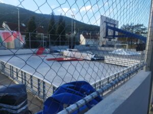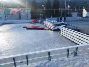 U sklopu 10. Dubrovačkog zimskog festivala prošli tjedan je po prvi put otvoreno klizalište u Mokošici, a isto već danas ne radi. Kako nam javlja čitateljica, zbog jakih udara bure koja je noćas puhala, dijelovi klizališta su odletjeli, a ograda igrališta se nakrivila i opasna je za prolaznike.
