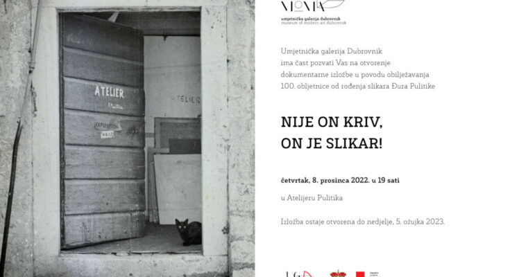 Dokumentarna izložba „Nije on kriv, on je slikar!“ povodom obilježavanja 100. obljetnice od rođenja slikara Đura Pulitike bit će otvorena u Atelijeru Pulitika u četvrtak, 8. prosinca u 19 sati.