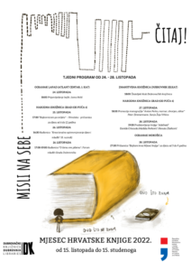 Za kraj drugog tjedna, u petak, 28. listopada Dubrovačke knjižnice organiziraju drugu radionicu “Bajkom kroz mjesec knjige” za djecu od 5 do 9 godina u Ogranku Mokošica u 17 sati, a s početkom u 19 sati u Čitaonici Narodne knjižnice Grad održat će se predstavljanje knjige “Adelheid” mladog dubrovačkog autora, Davidea Criscuoloa. Uz autora, na predstavljanju će sudjelovati Matilda Perković i Renata Zlatković.