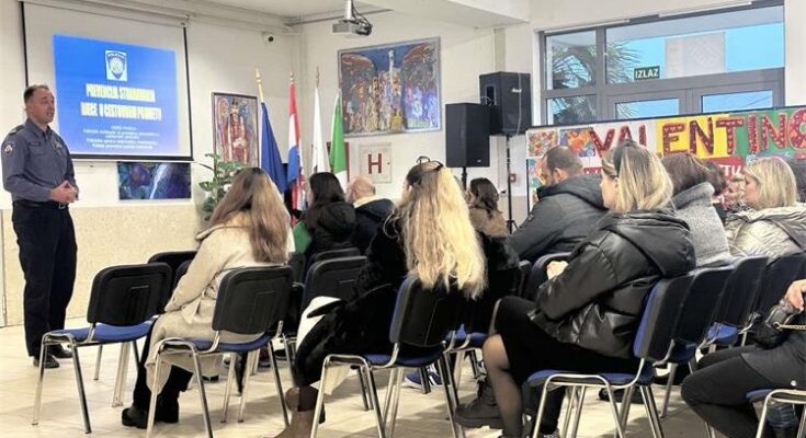 Policijski službenici Postaje prometne policije Dubrovnik na tematskom roditeljskom sastanku svih roditelja OŠ Ivana Gundulića u Dubrovniku, održali su predavanje na temu sigurnog sudjelovanja njihove djece u cestovnom prometu.