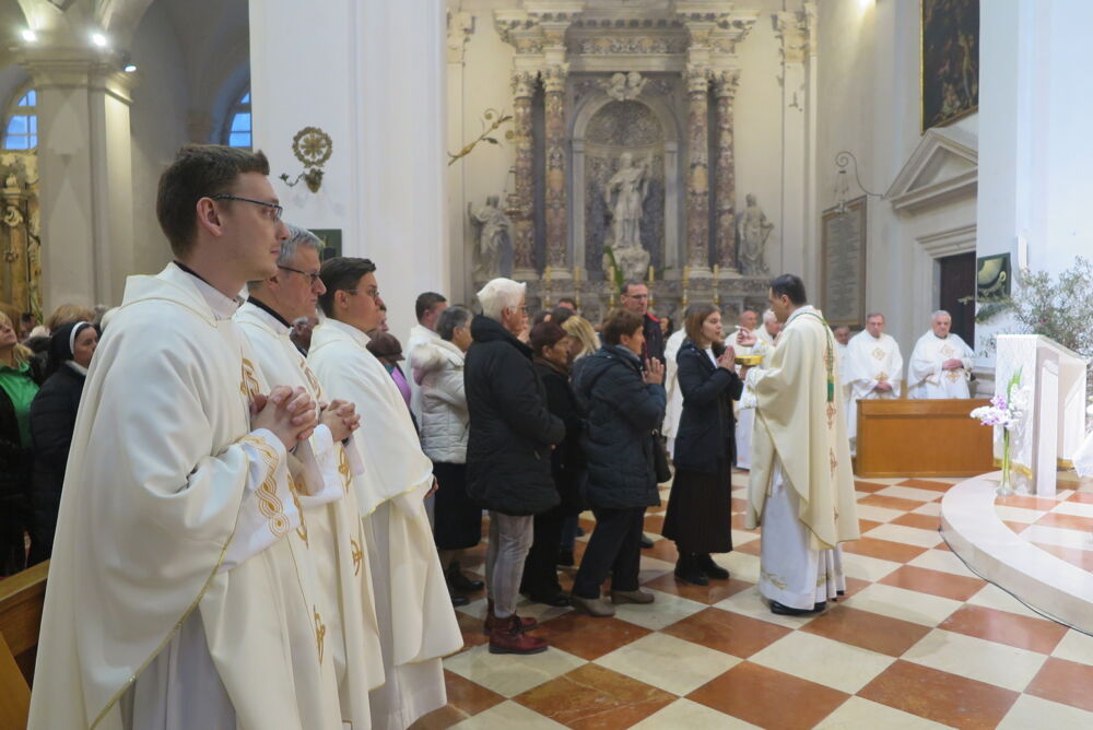 Liturgijsko pjevanje predvodio je Mješoviti katedralni zbor pod vodstvom Petre Potrebica i uz orguljsku pratnju Marka Palčoka, a vjernici su usrdnim molitvama podržali svećenike i preporučili ih Božjoj ljubavi.