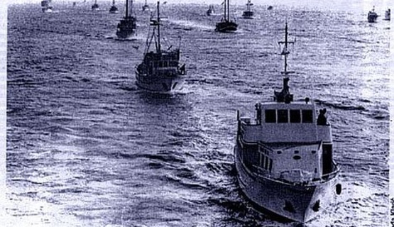 I tako, 30. listopada, noću oko jedan sat, u Korčulu uplovljava oko 30 plovila. Dan ranije dubrovački su radio amateri uhvatili poruke JRM u kojima zapovjedništvo 9. VPS Boka traži hitno zaustavljanje konvoja i pretres svih brodova i plovila, a zatim, kod Elafitskog otočja i Mljetskog kanala Jugoslavenska ratna mornarica sa svojim topovnjačama zaustavila je konvoj.