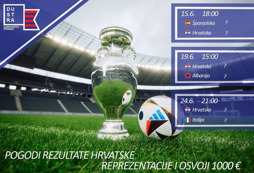 Dustra organizira nagradni natječaj: za prognozu rezultata Hrvatske nogometne reprezentacije u subotu, 15. lipnja protiv Španjolske, 19. lipnja protiv Albanije i 24. lipnja protiv Italije.