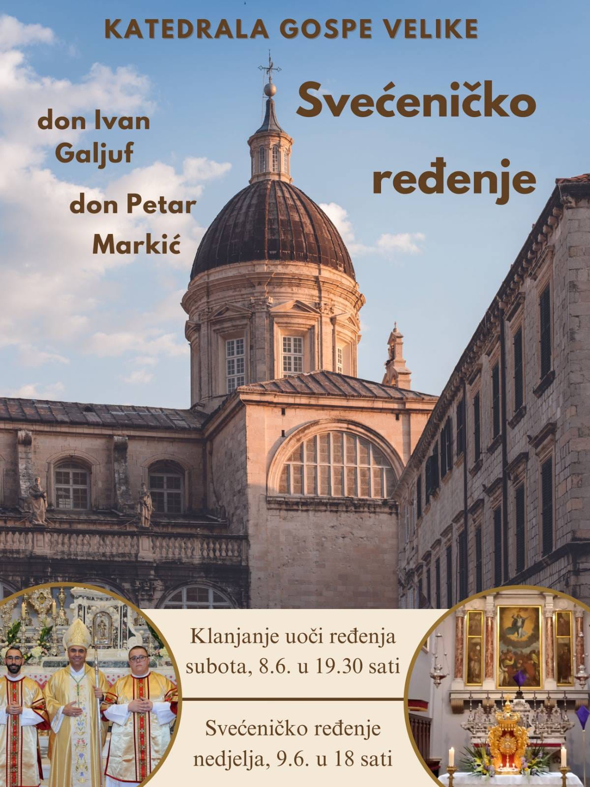 Euharistijsko klanjanje uoči svećeničkog ređenja dvojice đakona Dubrovačke biskupije don Ivana Galjufa i don Petra Markića bit će u subotu 8. lipnja u 19.30 sati u katedrali Gospe Velike u Dubrovniku.
