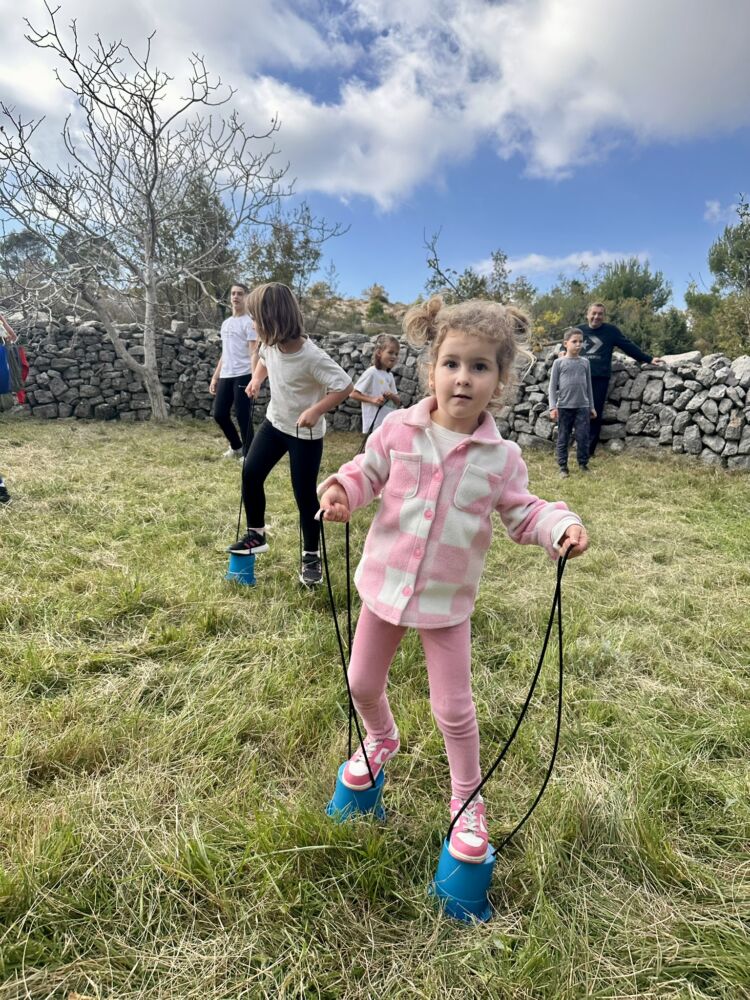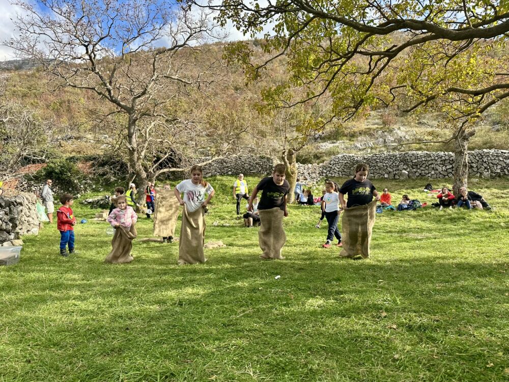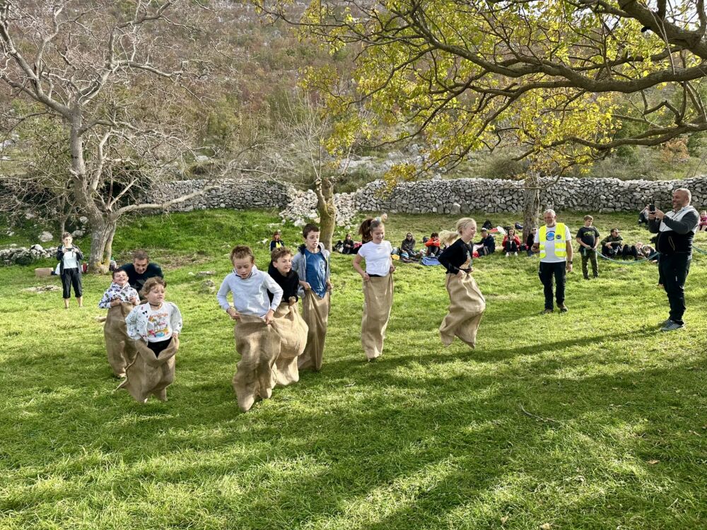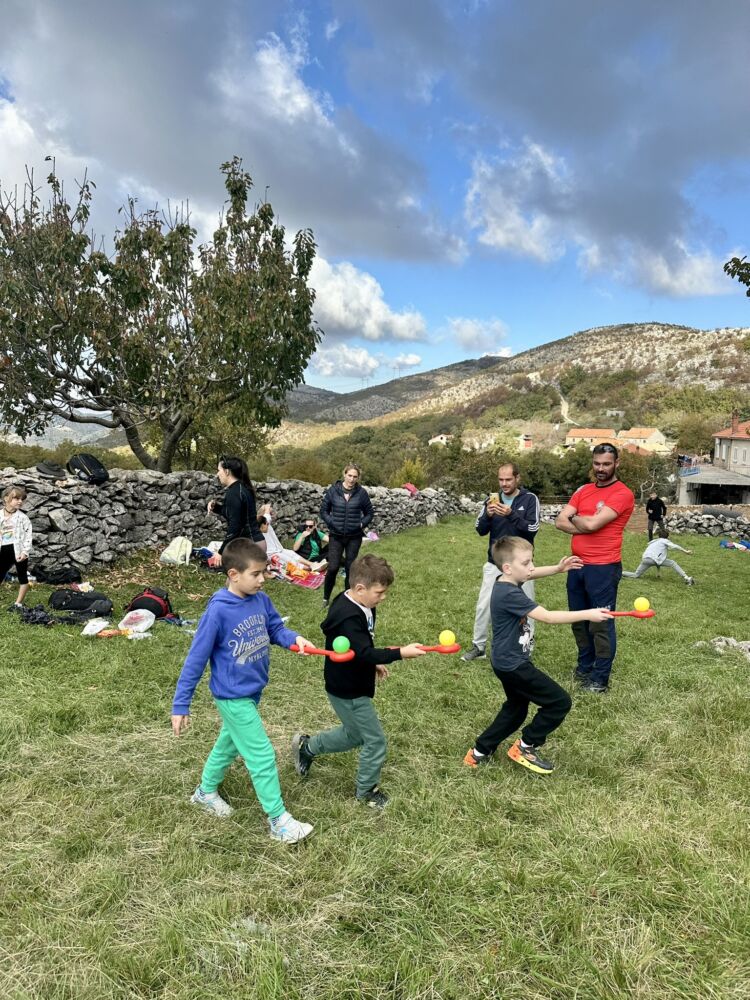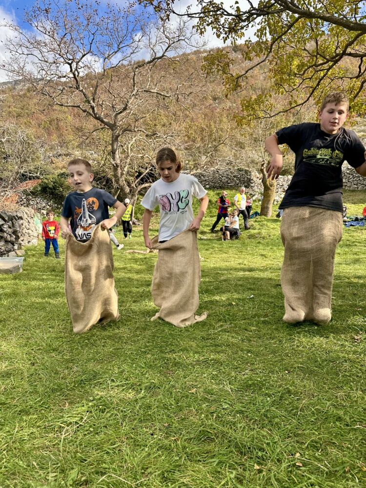 I tako u rekordnom roku od dva sata bili smo natrag u selu gdje su bili spremni poklon paketići i igre za djecu na livadi koje su pripremili naši članovi, volonteri i odgajateljice dječjih vrtića Dubrovnik.
