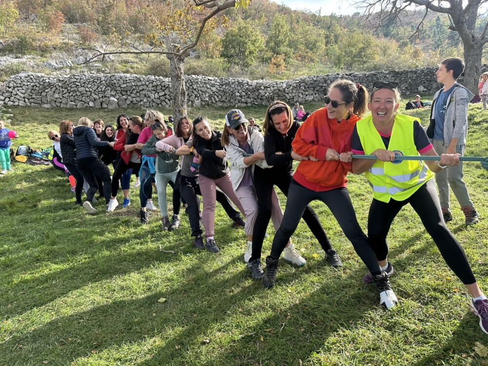 I roditelji su se ove godine odvažili potezati konop, mame protiv tata – i nećemo reći tko je pobijedio. Jer i kad su dječji planinarski izleti u pitanju – važno je sudjelovati! A kad sudjelujemo – nema nas đe ne dođemo!