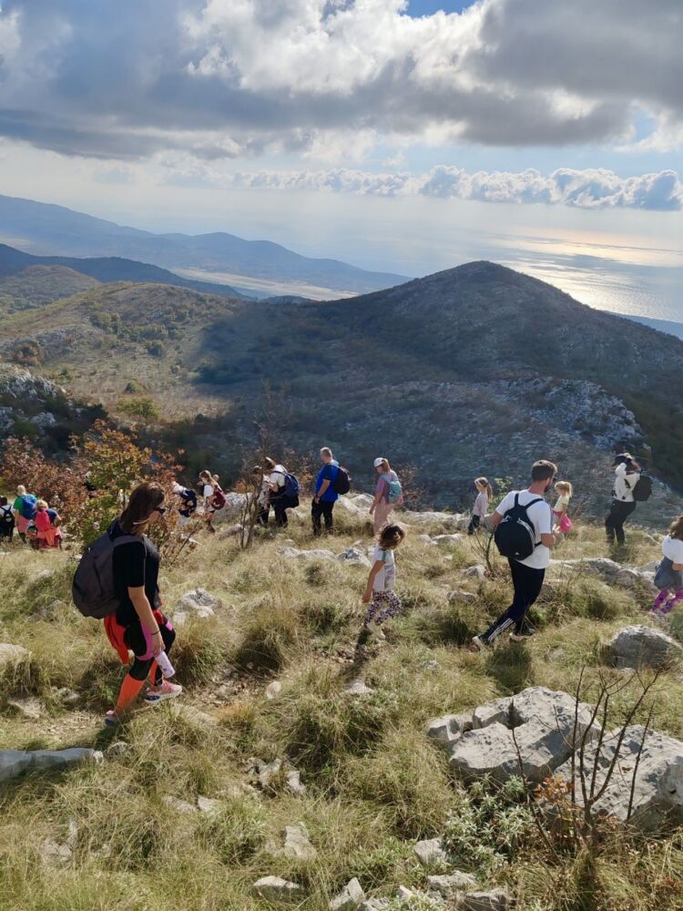 Već prije 9:30 počinju pristizati automobili roditelja s djecom pa se do 10 sati skupilo 117 hrabrih malih i velikih planinara, od 3 do 63 godine. A na izlet smo pozvali i vodili i mališane iz Doma Maslina!