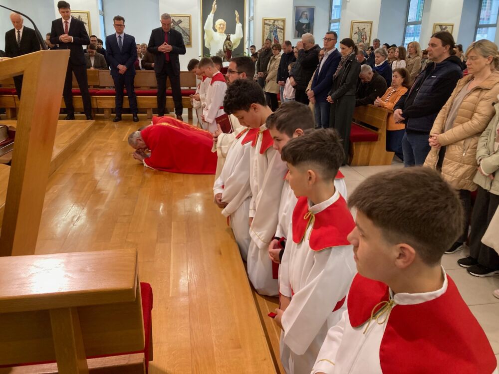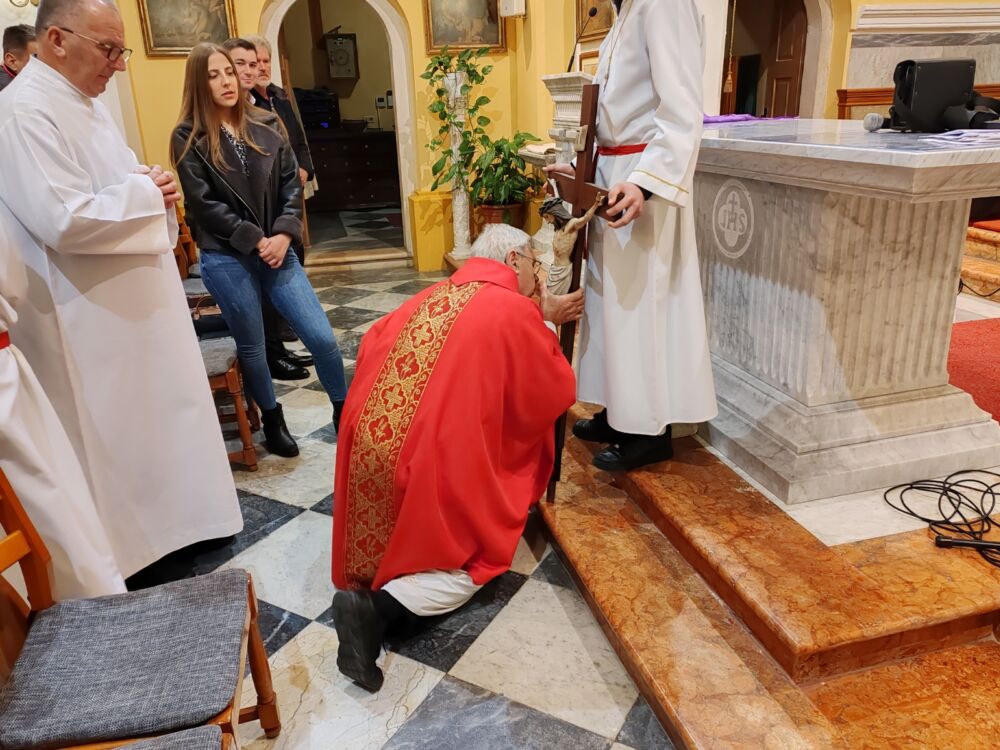 Obredi Velikog petka započeli su u tišini, bez ulazne pjesme, a svećenik u misnom ruhu crvene boje se prosto pred ogoljenim oltarom što je izraz najdublje molitve i klanjanja. Važna je to liturgijska gesta koja bez riječi, u posvemašnjoj tišini, iskazuje „duboko klanjanje Crkve pred velikim otajstvom spasenja“.