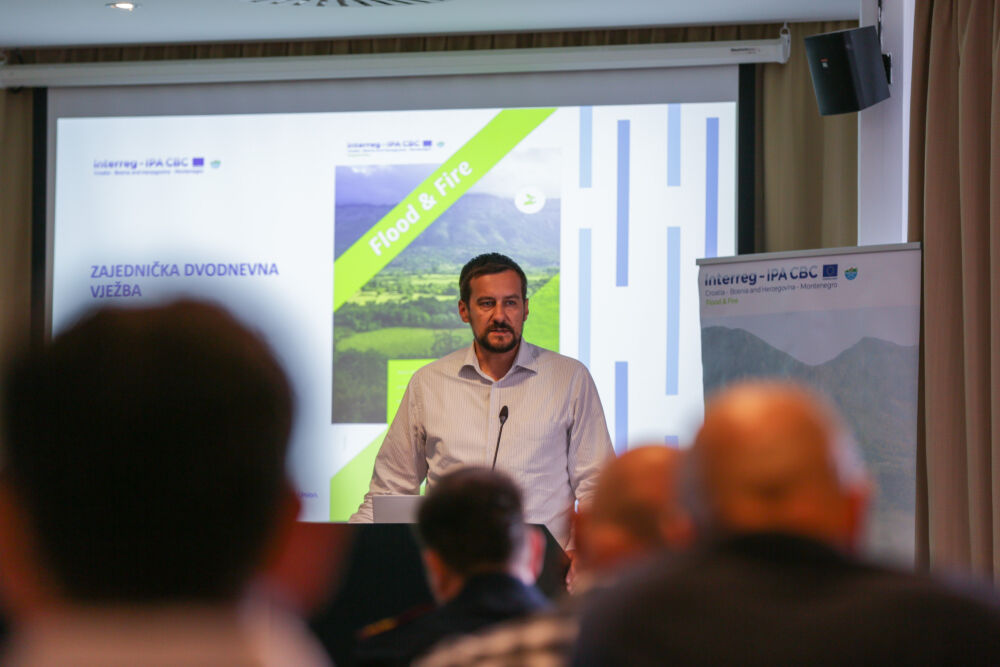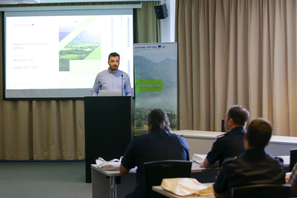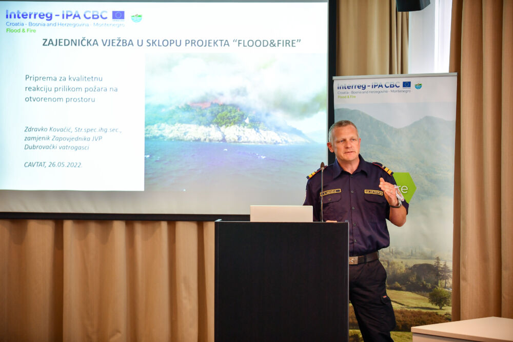 Dvodnevna vježba vatrogasnih postrojbi svih projektnih partnera u projektu „Flood and Fire“ održana je u četvrtak i petak, 26. i 27. svibnja i u njoj je sudjelovalo ukupno 20 vatrogasaca iz Konavala, Trebinja, Herceg Novog i Općine Ravno.  Prvi, teoretski dio vježbe organiziran je u hotelu Croatia u Cavtatu, dok se praktični dio održao na vanjskom vježbalištu u Popovićima.