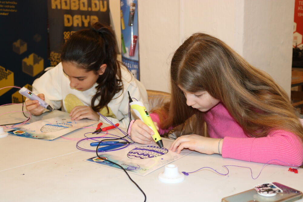 Polaznici radionica su uz pomoć plastike koja se zagrijava u 3D olovci, koristeći predloške i 3D modele jaja, izrađivali 2D i 3D uskršnje ukrase.