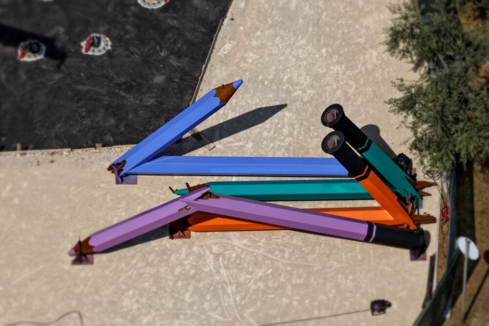 Spomen obilježje zamišljeno je kao kompozicija šarenih olovaka koja simbolično zamrzava bezbrižne trenutke dječje svakodnevice podsjećajući na živote prekinute ratom.