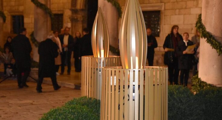 Na adventskom vijencu ispred Kneževa dvora večeras je upaljena druga adventska svijeća – svijeća mira. Svijeću je upalio nadbiskup mons Želimir Puljić.