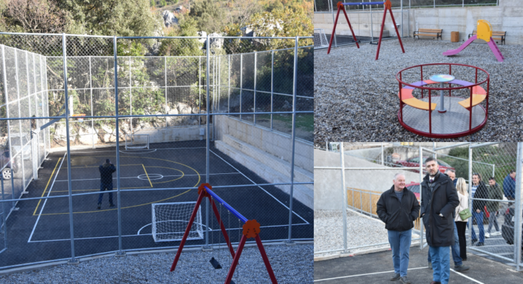Sportsko igralište za basket i mali nogomet dužine je 15,5 i širine devet metara, a uz njega su izgrađena i dva reda tribina za gledatelje. Dječje igralište namijenjeno je djeci od dvije do dvanaest godina, opremljeno je toboganom, ljuljačkom i vrtuljkom, a naknadno će se ugraditi i mali pješčanik. Radovi su trajali nešto više od tri mjeseca.
