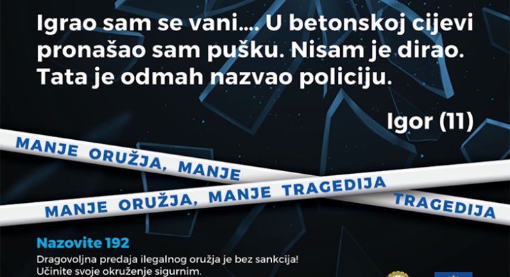 Policijska uprava dubrovačko-neretvanska još jednom zahvaljuje savjesnim građanima koji i dalje dragovoljno predaju oružje i streljivo. Koristimo ovu priliku da pozovemo sve one koji u svojim domovima imaju zaostalo oružje, streljivo ili minsko-eksplozivna sredstva da ga predaju policiji na uništenje i na taj način svoj život i život svoje obitelji učine sigurnijim.
