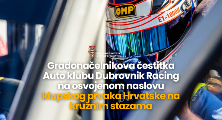 Auto klub Dubrovnik Racing osvojio je naslov klupskog prvaka Hrvatske na kružnim stazama. Tim povodom im je gradonačelnik Mato Franković uputio čestitku koju prenosimo u cijelosti: