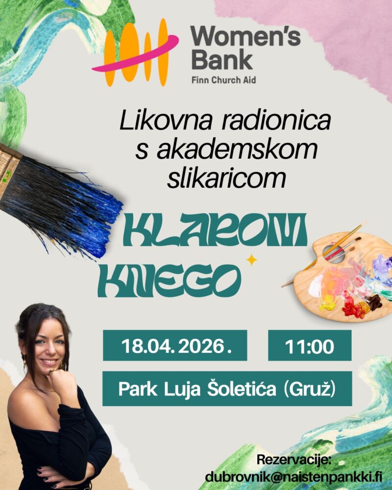 Women’s Bank Dubrovnik organizira humanitarnu likovnu radionicu koja će se održati ovu subotu, 18. travnja, s početkom u 11 sati u parku Luja Šoletića (u Gružu).