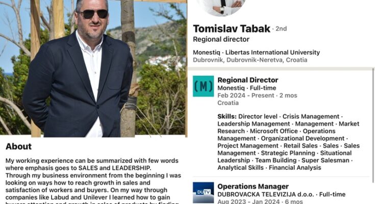 Tomislav Tabak, nakon što se neslavno oprostio od neslužbene pozicije vlasnika i direktora Dubrovačke televizije, ima novo radno mjesto.