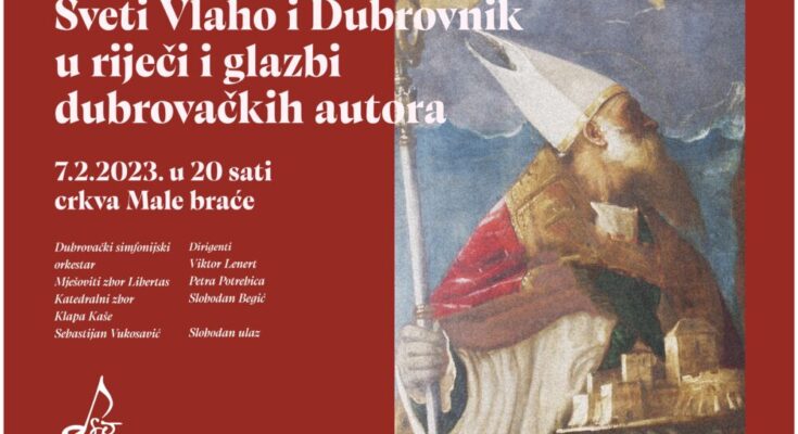 Dubrovački simfonijski orkestar, Mješoviti zbor Libertas, Katedralni zbor i Klapa Kaše nastupit će na koncertu u čast dubrovačkom nebeskom zaštitniku, svetom Vlahu, u utorak, 7. veljače 2023. u crkvi Male braće.