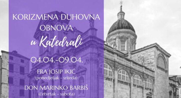 Korizmenu duhovnu obnovu od 4. do 9. travnja u Katedrali Gospe Velike predvodit će fra Josip Ikić (ponedjeljak – srijeda) i don Marinko Barbiš (četvrtak – subota).