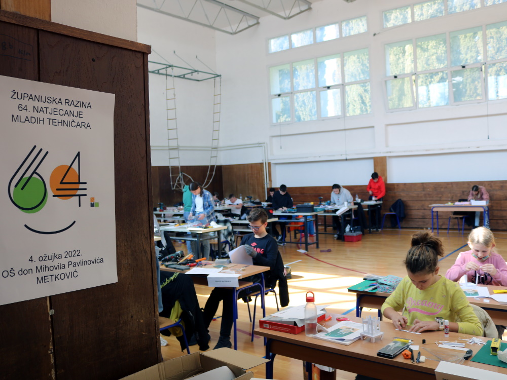 U petak 04. ožujka, održana je županijska razina 64.-og Natjecanja mladih tehničara. Na županijsku razinu se plasiralo 48 učenika, ali ih se par zbog bolesti nije natjecalo. Osnovna škola don Mihovila Pavlinovića u Metkoviću ove godine je ugostila 46 učenika od petog do osmog razreda iz rekodrnih 14 županijskih osnovnih škola (OŠ Blato, OŠ Cavtat, OŠ don Mihovila Pavlinovića Metković, OŠ Ivana Gundulića, OŠ Lapad, OŠ Marin Držić, OŠ Mokošica, OŠ Montovjerna, OŠ Opuzen, OŠ Orebić, OŠ Slano, OŠ Stjepana Radića Metković, OŠ Vladimir Nazor Ploče i OŠ Župa Dubrovačka).