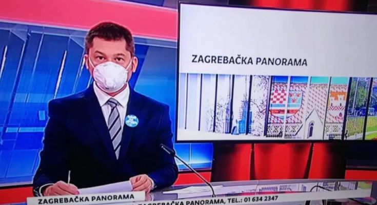 Gledatelji HRT-a iznenadili su se kad su jučer ugledali voditelja Zagrebačke panorame Fabijana Kalu sa zaštitnom maskom preko lica.