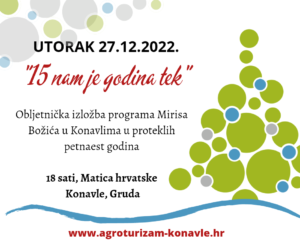 Obljetnička izložba programa Mirisa Božića u Konavlima u proteklih 15 godina otvara se sutra, u utorak 27. prosinca u 18:00 sati u Matici hrvatskoj Konavle na Grudi.