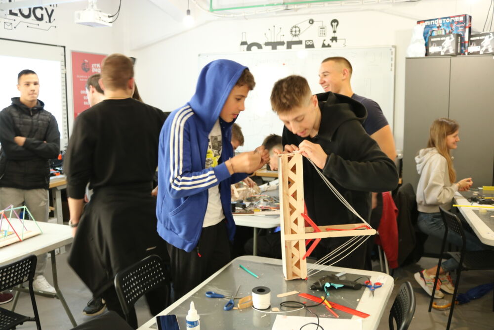Pod vodstvom studenata Odsjeka za arhitekturu Internacionalnog univerziteta u Sarajevu – Ene Ribičić, Eldine Kepić, Ranie Ehnech Seran i Emina Podruga – sudionici su imali priliku istražiti osnovne principe stabilnosti i nosivosti mostova kroz timski i praktičan rad.