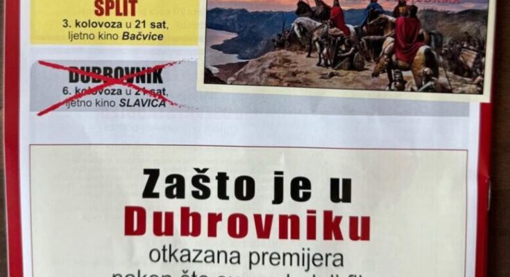Na plakatu koji najavljuje svečane premijere novog filma Jakova Sedlara “Oluja, hrvatska pobjeda nad pobjedama” u Zadru 1. kolovoza, Splitu 3. kolovoza, najavljen je i Dubrovnik, 6. kolovoza u ljetnom kinu Slavica, ali je naknadno prekrižen.