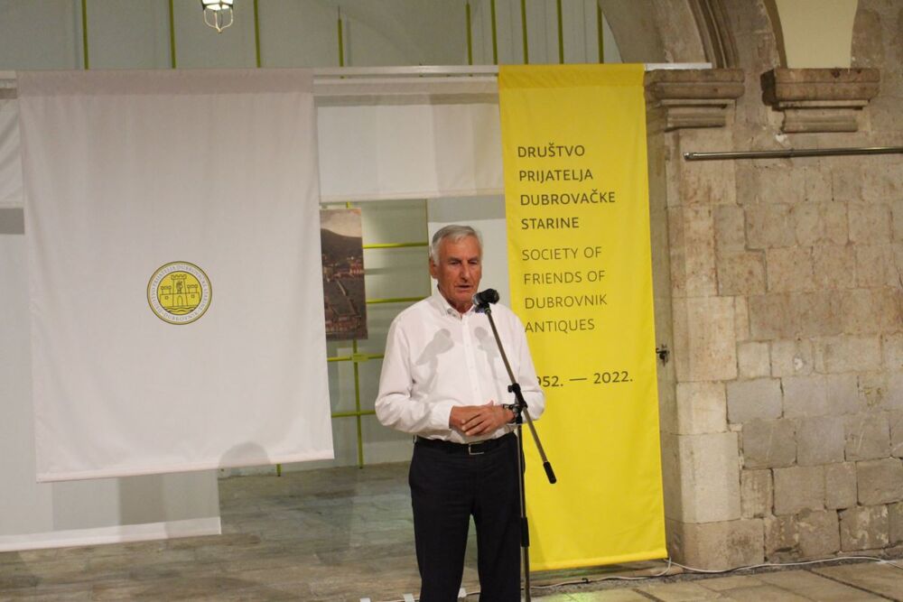 „Sedamdeset godina Društva, sedamdeset godina uistinu raznih izazova, kako onih prilikom obnove spomeničke baštine, tako i onih dnevnopolitičkih. I jedne i druge je trebalo izdržati i preživjeti. Danas možemo svjedočiti činjenici da se društvo otvorilo za javnost kako bi naši sugrađani mogli vidjeti što je to Društvo, koliko je bitno u povijesti grada, u obnovi spomeničke baštine našega Grada. Da ste prije šest ili sedam godina pitali naše sugrađane, a mi smo ih pitali kroz ankete, o tome tko bi trebao upravljati zidinama, bilo je 50-50. Zašto je tako bilo? Zašto što je percepcija ponekad presudnija od istine i zato što se nije do kraja otvaralo i govorilo o tome koliki je značaj obnove spomeničke baštine kojoj doprinosi Društvo prijatelja dubrovačke starine. Prije početka izložbe, pri susretu s predsjednikom DPDS-a, postavio sam mu pitanje možemo li zamisliti obnovu Soko grada, Kneževih dvora u Slanome, Konavlima, na Lopudu da nije bilo Društva? Kada bi stonski fortifikacijski sustav izgledao ovako kako izgleda danas da nema Društva? Sigurno bi se u nekom trenutku obnova dogodila, ali danas joj ne bi svjedočili da nije Društva. Zato je Društvo iznimno važan segment u očuvanju spomeničke baštine i zato Društvu želim puno sreće i uspjeha u nadolazećim godinama, ne u 70 nego 270 i više godina, jer o `starcu` treba voditi brigu kako bi on i dalje bio njegovan, održavan i kako bi ga spremnog predali novim generacijama koji će ga jednako čuvati, novim predsjednicima, novim članovima koji će s jednakom ljubavlju voditi ovo Društvo brinući o onom osnovnom, a to nije novac – to je obnova spomeničke baštine“, istaknuo je ovom prilikom gradonačelnik Franković.