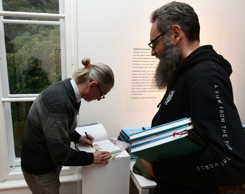 U prepunoj Umjetničkoj galeriji Dubrovnik sinoć je otvorena velika izložba Dubravka Kastrapelija „Dijalog s Držićem“ kojom Dom Marina Držića u suradnji s Umjetničkom galerijom Dubrovnik obilježava deset godina zajedničkog rada s ilustratorom Kastrapelijem.
