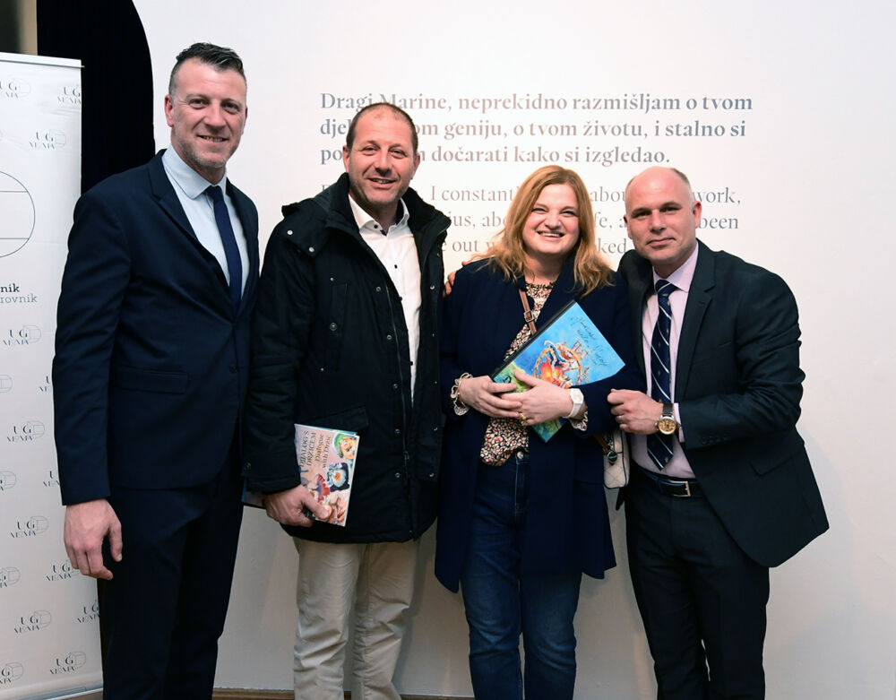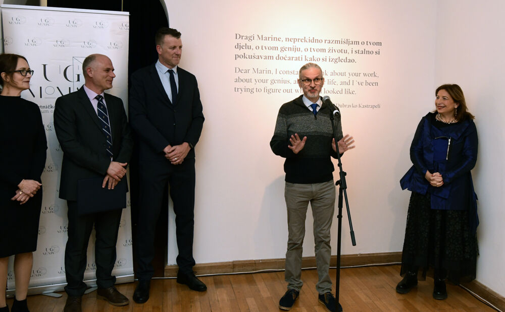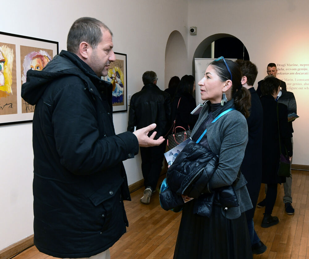 Na otvorenju su govorili ravnatelj Umjetničke galerije Dubrovnik Tonko Smokvina, ravnatelj Doma Marina Držića, Nikša Matić, kroatolog Pavo Jančić, kustosica Doma Marina Držića Valerija Jurjević, a izložbu je službeno otvorila predsjednica Upravnog vijeća, izv. prof. dr.sc. Katja Bakija.