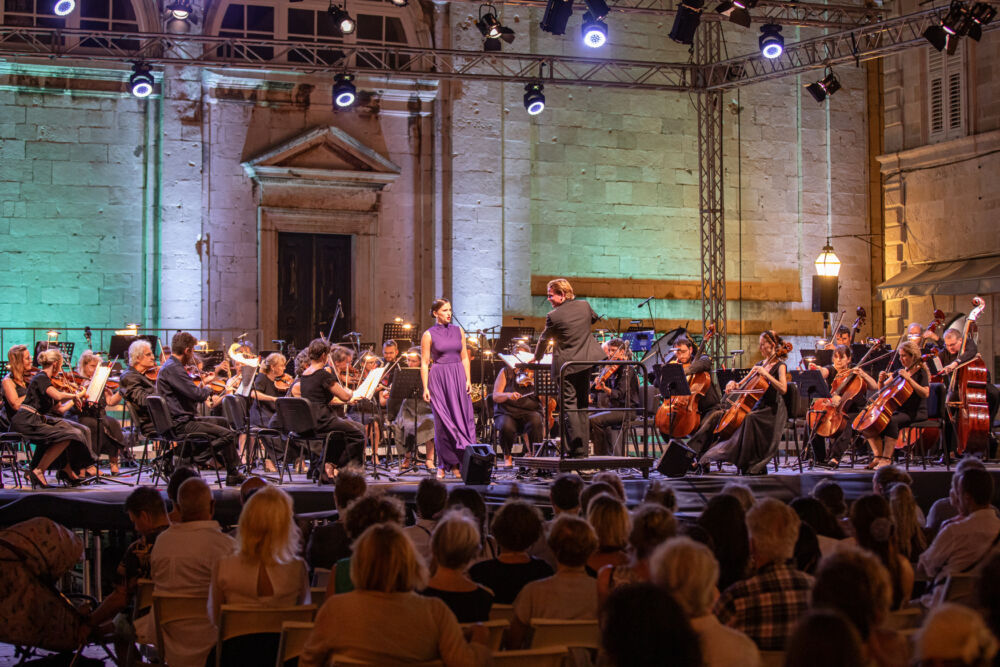 Veliki koncert ispred Katedrale upriličio je sinoć, 21. kolovoza Dubrovački simfonijski orkestar sa sopranisticom Josipom Bilić, a pod ravnanjem maestra Valentina Egela, zasluživši ovacije publike briljantnom i muzikalnom izvedbom koja je prkosila snažnom vjetru.