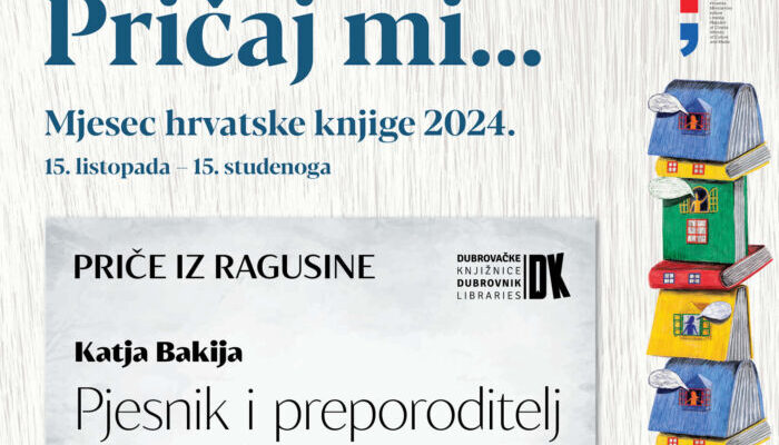 U okviru Mjeseca hrvatske knjige, Dubrovačke knjižnice nastavljaju s Pričama iz Ragusine. U utorak, 29. listopada 2024. na trećem katu Znanstvene knjižnice (Cvijete Zuzorić 4) književna povjesničarka, izvanredna profesorica na Sveučilištu u Dubrovniku dr. sc. Katja Bakija održat će predavanje u povodu 240. obljetnice rođenja i 150. obljetnice smrti pjesnika i preporoditelja Antuna Kaznačića.