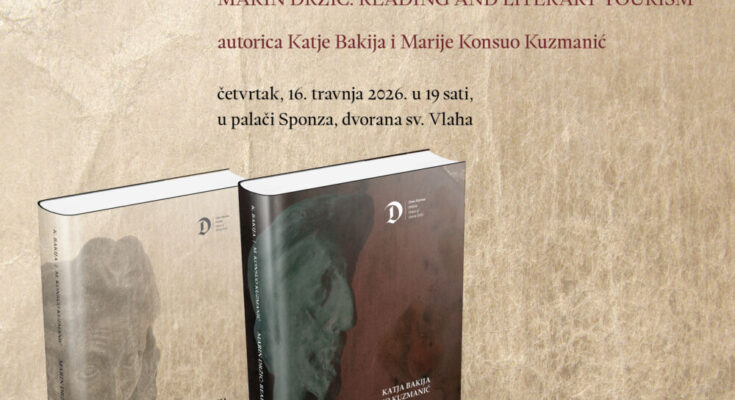 Dom Marina Držića s veseljem Vas poziva na predstavljanje dvije znanstvene knjige tiskane u okviru vlastite izdavačke djelatnosti – „Marin Držić: čitanje i književni turizam“ te njenog prijevoda na engleski jezik „Marin Držić: Reading and Literary tourism“. Autorice izdanja su kroatistica i povjesničarka književnosti, nasl. izv. prof. dr. sc. Katja Bakija i Marija Konsuo Kuzmanić, profesorica hrvatskog jezika i književnosti. Predstavljanje ovih vrijednih knjiga će se upriličiti u četvrtak, 16. travnja 2026. u dvorani sv. Vlaha u palači Sponza, s početkom u 19 sati.