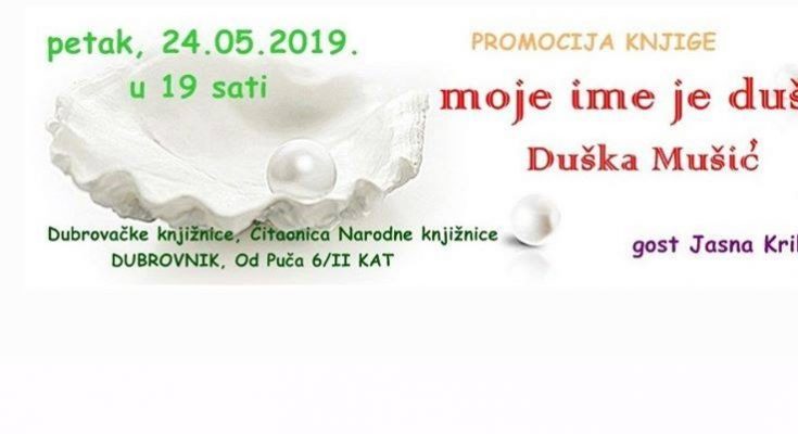 Predstavljanje knjige Duške Mušić „Moje ime je duška“ održat će se u petak, 24. svibnja 2019., u Čitaonici Narodne knjižnice Grad, s početkom u 19 sati. Kao glazbena gošća nastupit će Jasna Krilić, prof. glazbe.