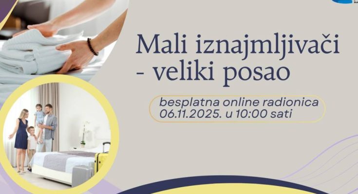 Kako bi vaše poslovanje bilo što uspješnije i bez stresa, pozivamo vas na besplatnu online radionicu Centra za poduzetništvo DNŽ na temu “Mali iznajmljivači – veliki posao”.
