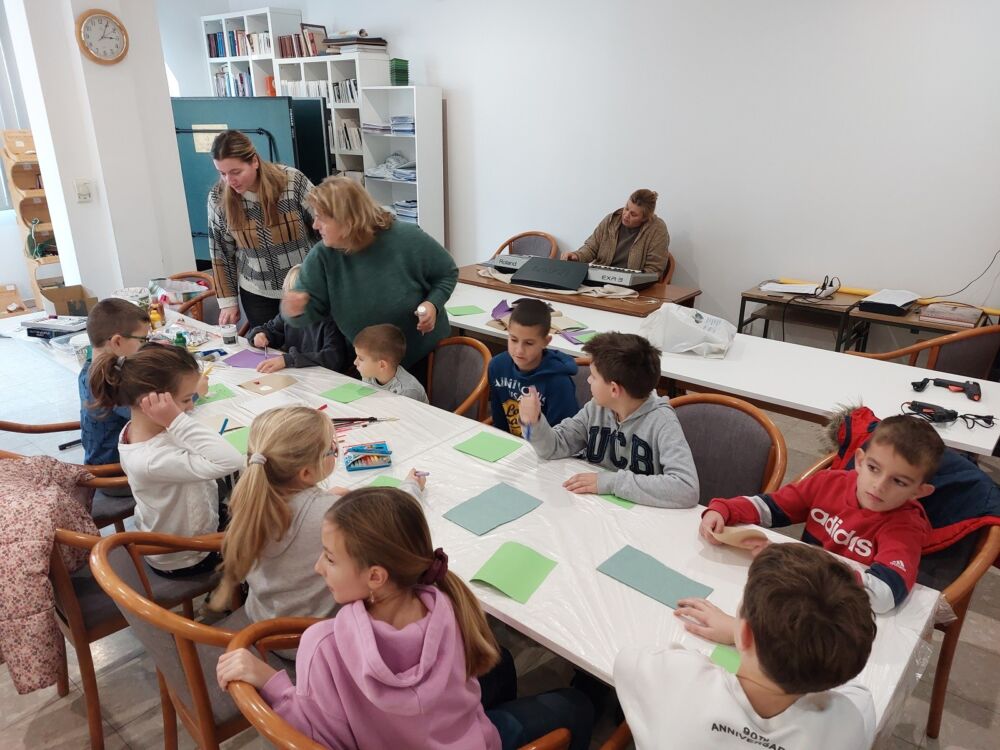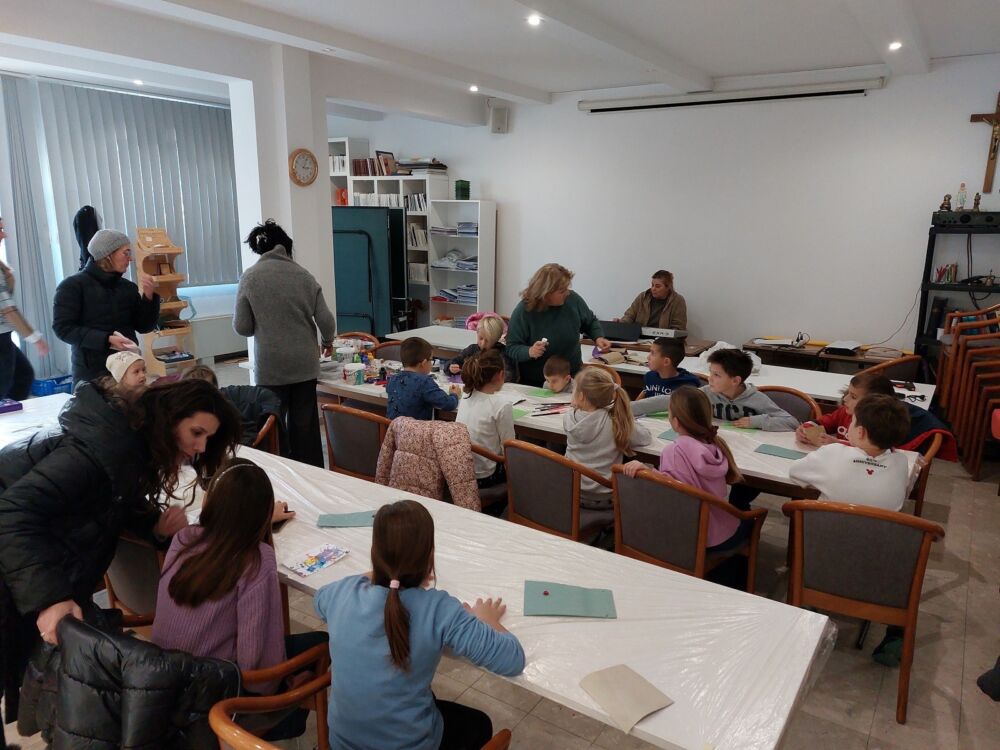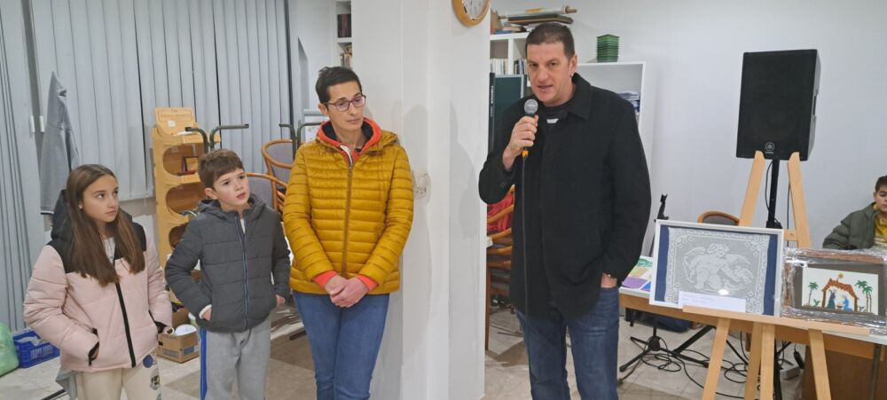 Likovnu radionicu za djecu s božićnim motivima priredila je i vodila akademska slikarica Ivana Jovanović Trostmann u dvorani Župe Presvetog Spasitelja.