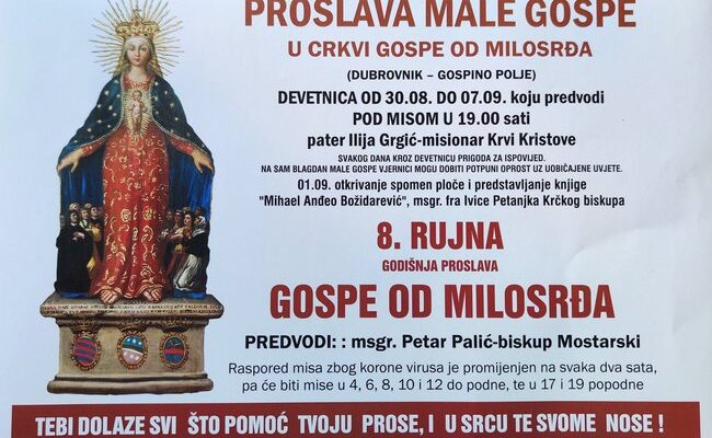 Kapucinski samostan i Biskupijsko svetište Gospe od Milosrđa u Dubrovniku 30. kolovoza započinju duhovnu pripravu za proslavu blagdana Male Gospe 8. rujna.