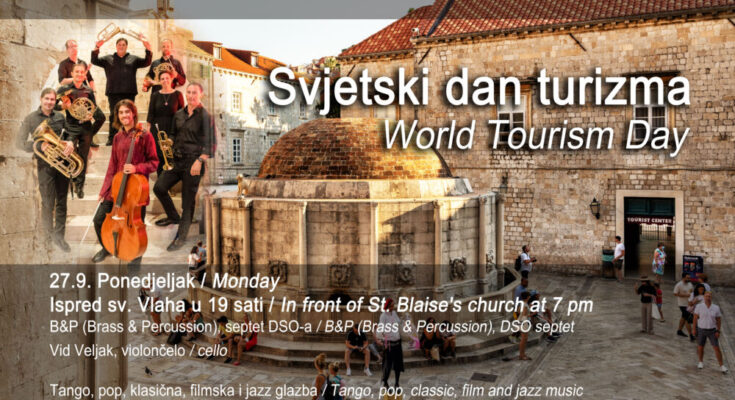 Tradicionalni koncert povodom Svjetskog dana turizma, u organizaciji Turističke zajednice grada, Grada Dubrovnika i Dubrovačkog simfonijskog orkestra, održat će se u ponedjeljak, 27.rujna u 19 sati ispred crkve sv.Vlaha.