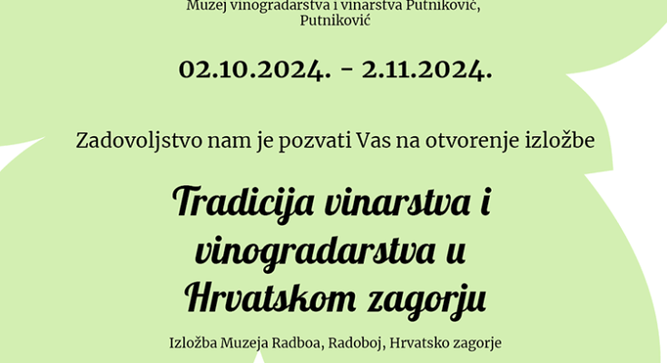Suradnja dvaju muzeja; Muzeja vinogradarstva i vinarstva – Putniković i Muzeja Radboa dio je projekta “Tradicija vinarstva i vinogradarstva dviju hrvatskih regija” koja će se realizirati tijekom listopada ove godine. Izložbama želimo prikazati povijest vinarstva i vinogradarstva dviju Hrvatskih regija-Hrvatskog zagorja i Dalmacije, želimo ukazati na važnost vinske kulturu i tradiciju ovih krajeva, a posjetiteljima ponuditi nova, edukativna, živopisna, osjetilna i taktilna iskustva u povijesti vinogradarstva i kulture pravljena i ispijanja vina. Također, želimo ukazati na važnost najstarije okamine lista vinove loze u Hrvatskoj, pronađene u Radoboju, a i u ovom dijelu Europe, koja se ujedno vezuje na postav i eksponate Muzeja Radboa.