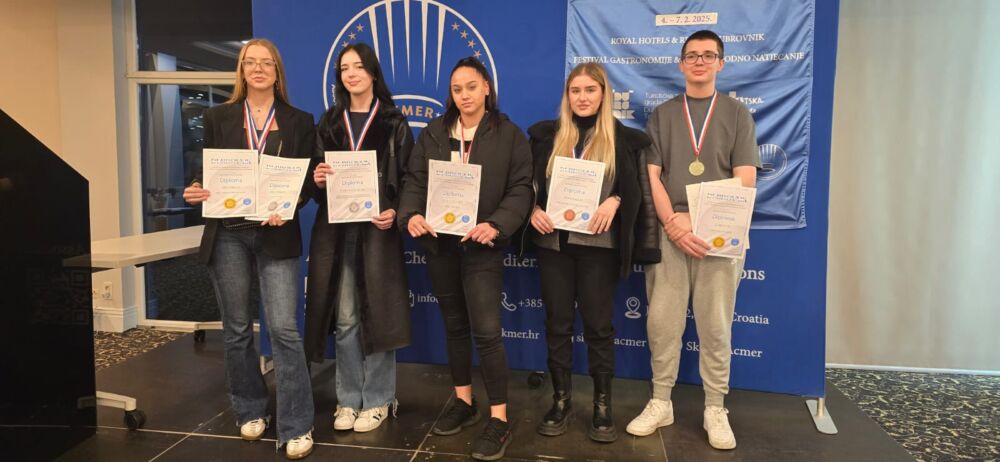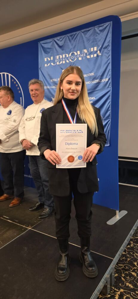 Royal Gourmet Dubrovnik, manifestacija posvećena umjetnosti hrane i pića, održala se u Royal Hotels & Resorts u Dubrovniku, od 4. do 7. veljače 2025. Na natjecanju su sudjelovali naši učenici u disciplinama ugostiteljsko posluživanje, kuharstvo i slastičarstvo gdje su postigli izvrsne rezultate. U četvrtak na službenom zatvaranju manifestacije proglašeni su najbolji natjecatelji.