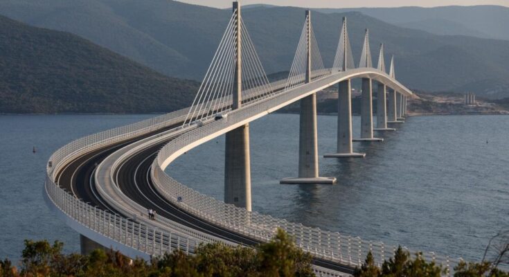 Pelješki most, građen od 2018. do 2022. godine, strateški je projekt kojim je jug Hrvatske spojen s ostatkom zemlje. Ukupna vrijednost projekta iznosila je oko 420 milijuna eura, od čega je Europska unija kroz bespovratna sredstva osigurala 357 milijuna eura.