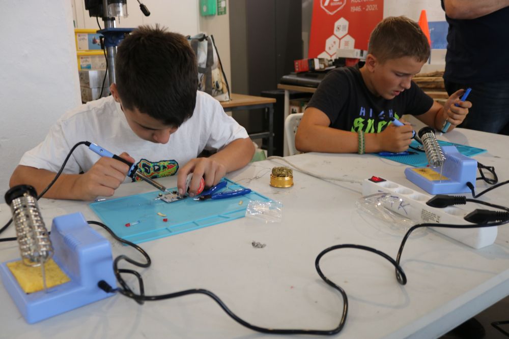 Polaznici su lemili setove robota, tako što su na tiskane pločice spajali elektroničke elemente poput otpornika, LED dioda, prekidača i držača baterije. Nakon stečenog znanja iz elektronike i elektrotehnike te uspješnog lemljenja svih komponenti dobili su svjetleće robote.