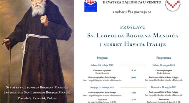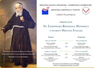 U organizaciji Hrvatske matice iseljenika-podružnice Dubrovnik i Hrvatske zajednice u Venetu,i 21. svibnja ove godine u Svetištu sv. Leopolda Bogdana Mandića u Padovi održat će se petnaesti po redu Susret Hrvata Italije i proslava blagdana sv. Leopolda.