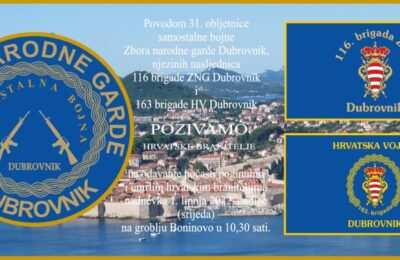 Povodom 31. obljetnice samostalne bojne Zbora narodne garde Dubrovnik, njezinih nasljednica 116. brigade ZNG Dubrovnik i 163. brigade HV Dubrovnik pozivamo hrvatske...