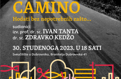 U organizaciji Sveučilišta u Dubrovniku u četvrtak, 30. studenoga, u 18 sati u Sveučilišnom kampusu je održana javna tribina pod nazivom „CAMINO Hodati bez...